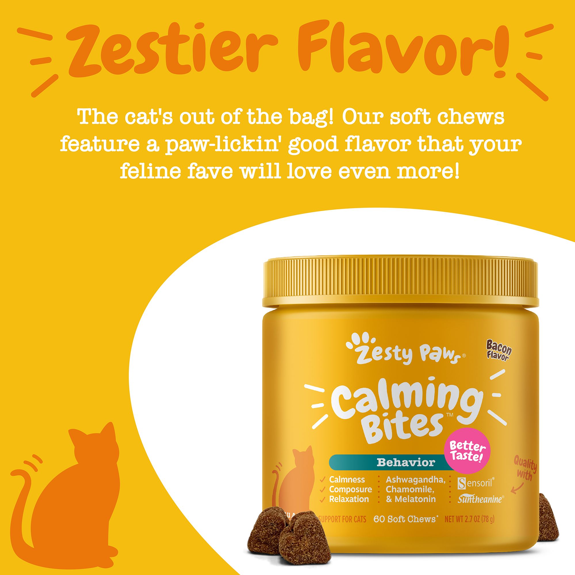 Zesty Paws Calming Bites Behavior Bacon Flavor Soft Chews 60ct Cat Anxiety Calming Petsmart